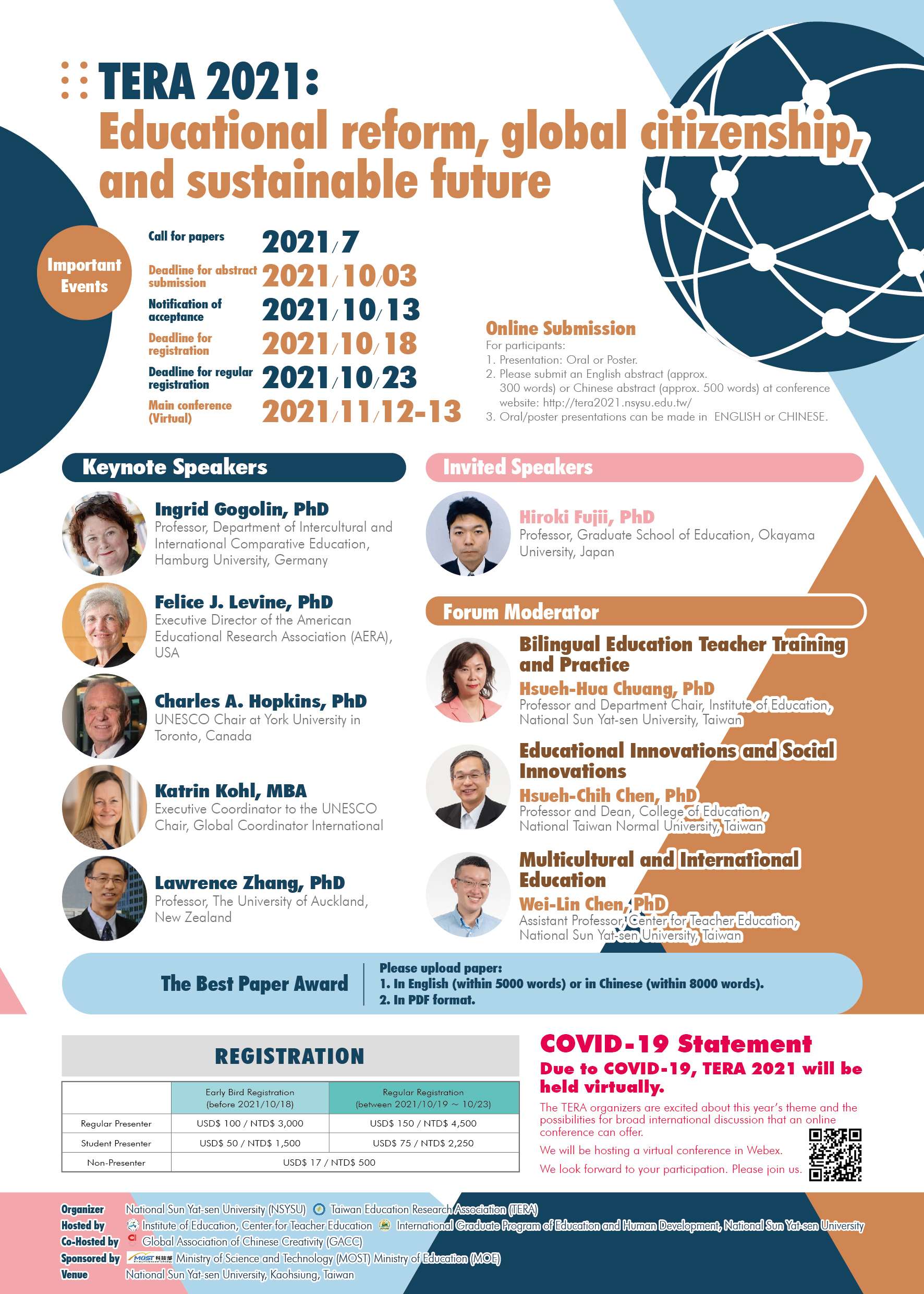 (六)報名詳情請參閱研討會網站: https://tera2021.nsysu.edu.tw/ 。